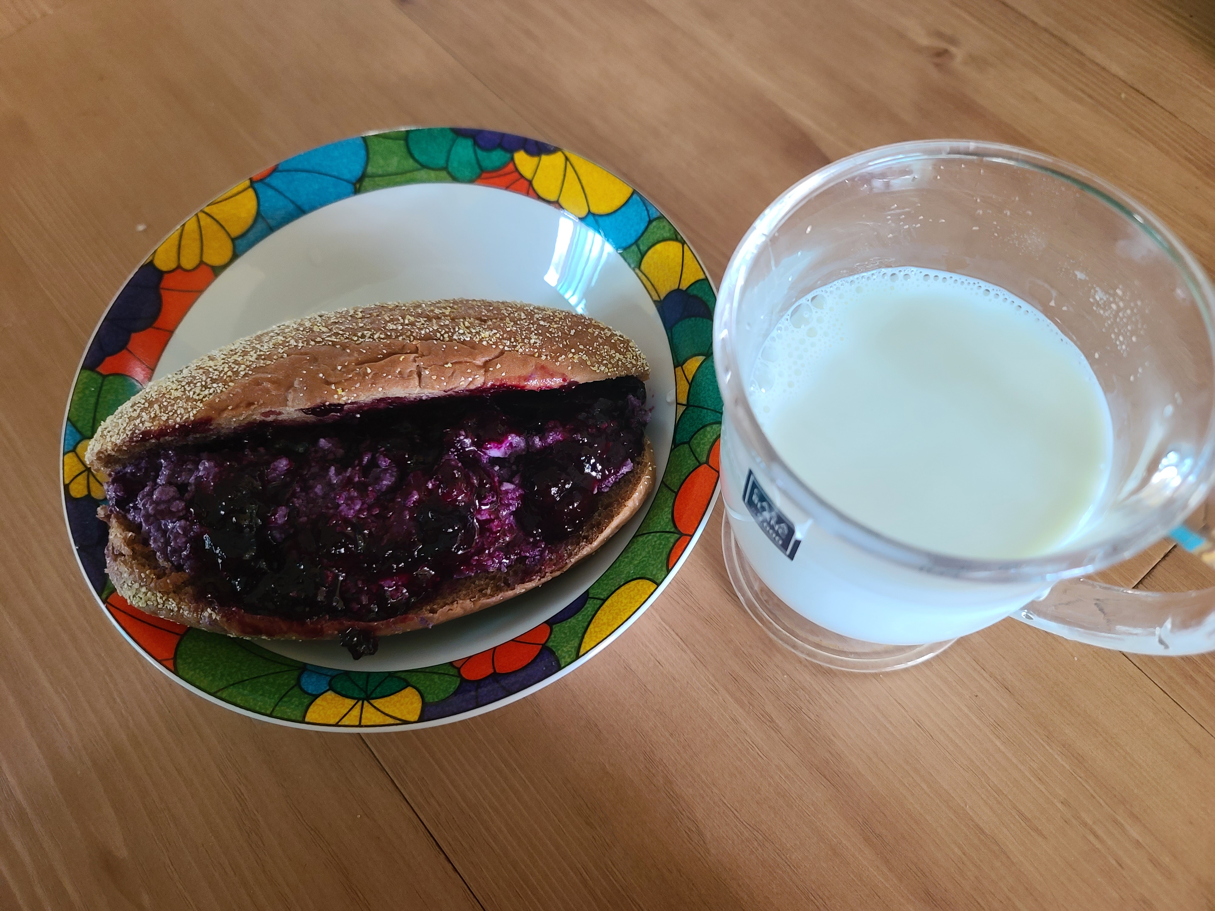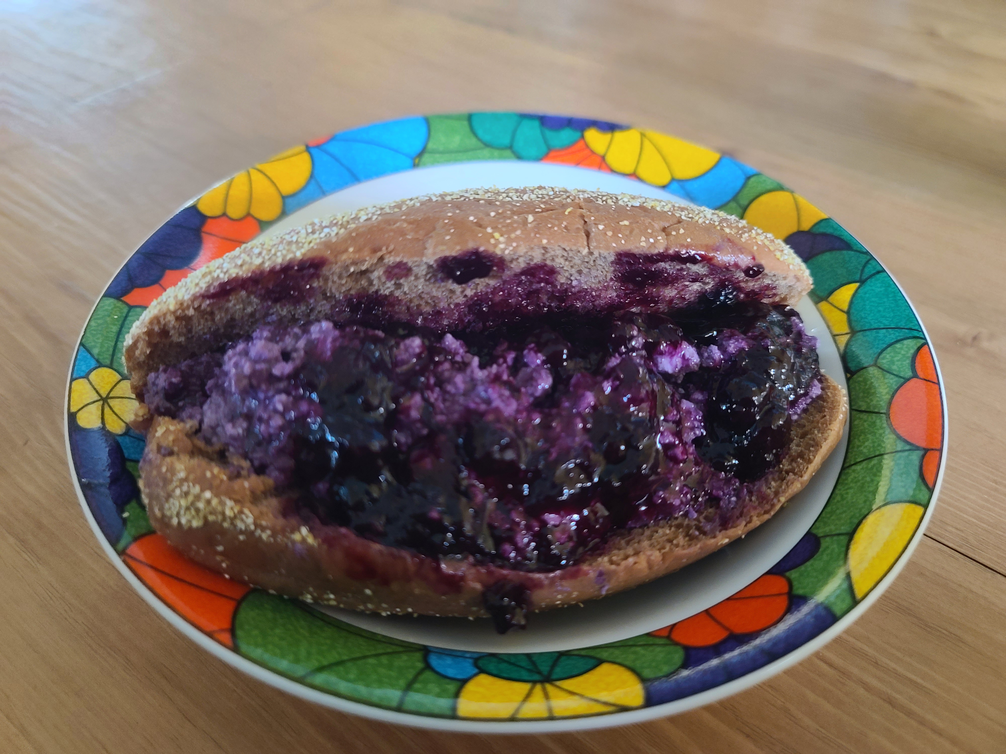 블루베리로 쨈 만들고, 치즈도 만들고, 빵 빼고는 직접 만들었단다.