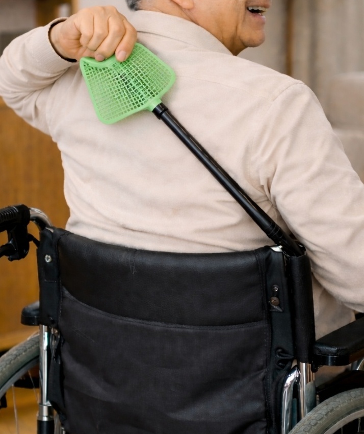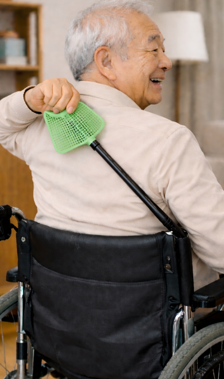 순간 나는 혹시 파리채 손잡이 쪽으로 앞에 계신 다른 어르신께 휘두르시지는 않을까? 걱정이 되어, 반사적으로 휠체어 앞을 가로막고 섰다.