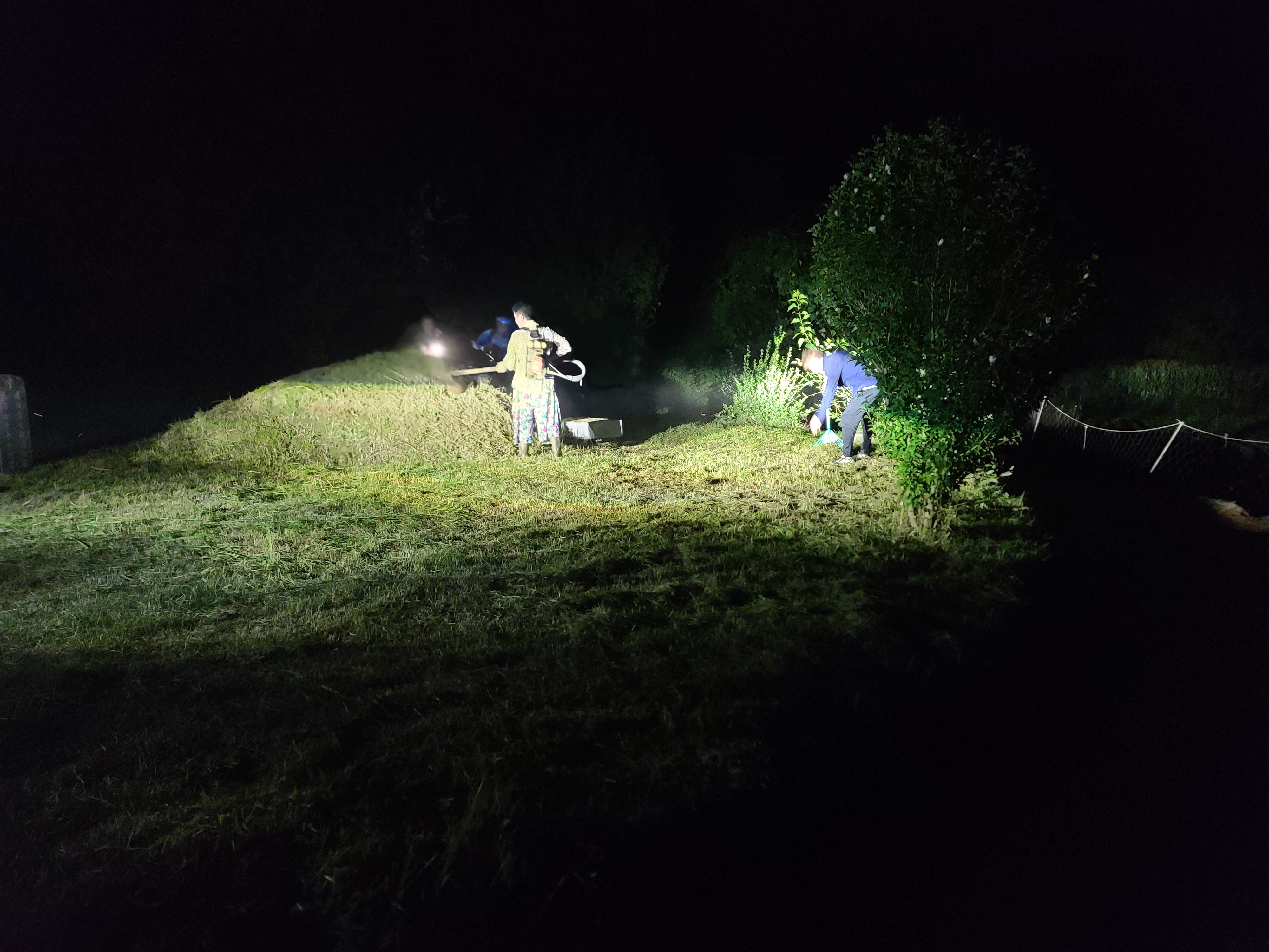 예초기는 켜졌다 꺼졌다를 반복했고, 결국 밤 9시 반까지 차 불빛에 의지해 풀을 다 정리했다.